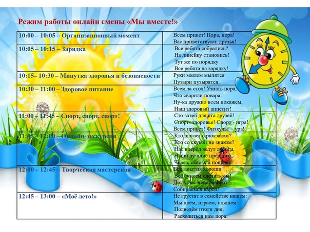 Режим дня онлайн-лагеря.