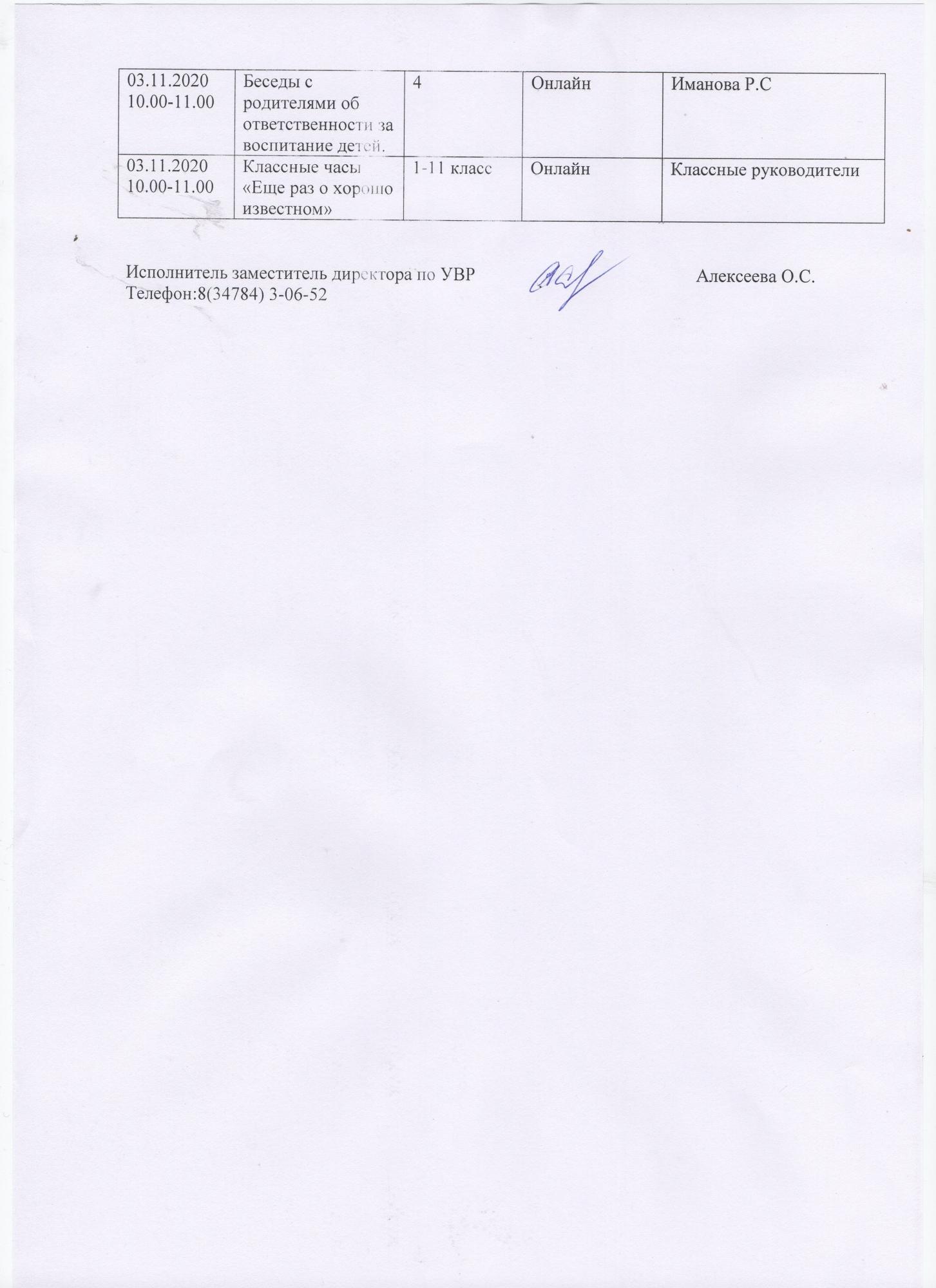 План работы на осенние каникулы с 19 октября по 04 ноября 2020 года